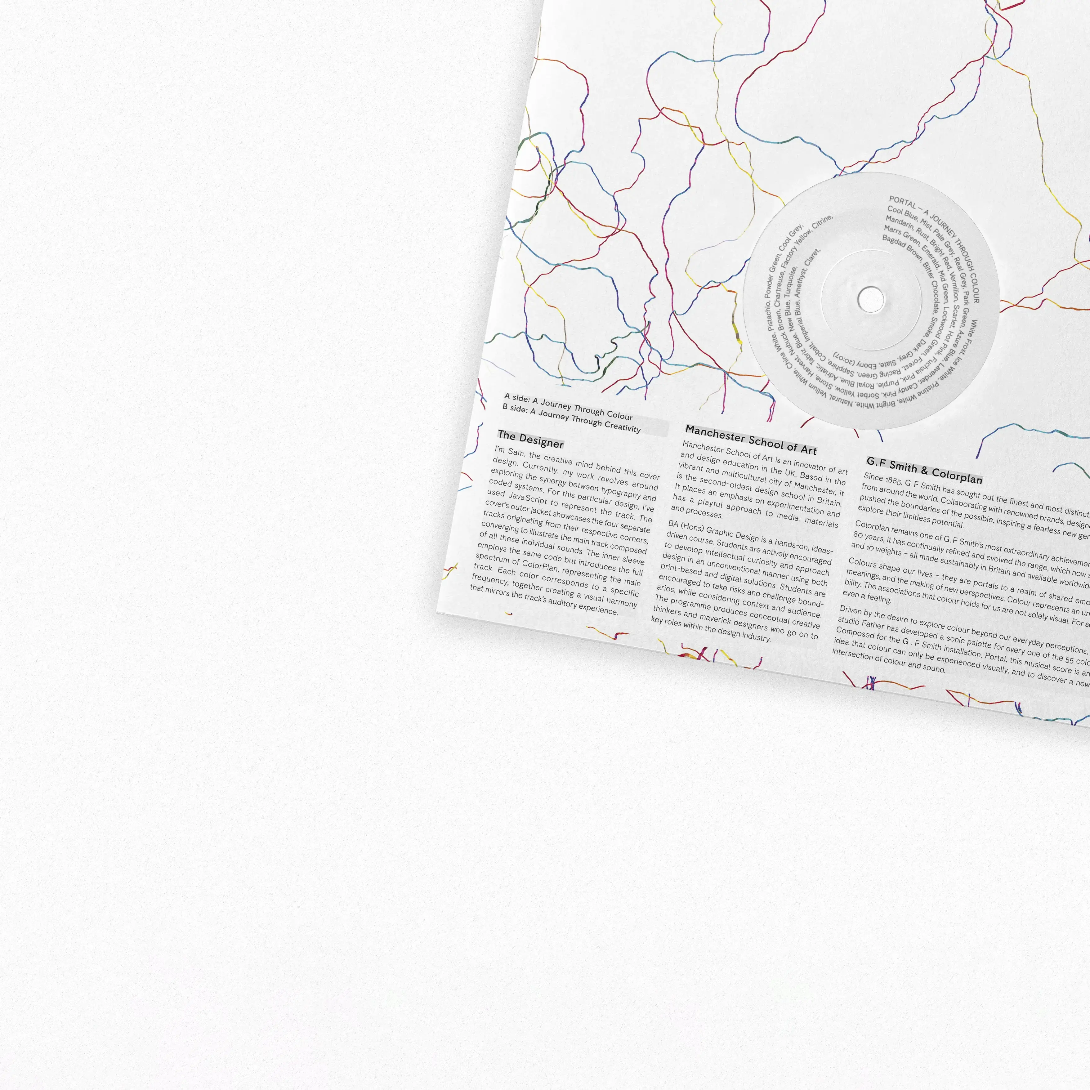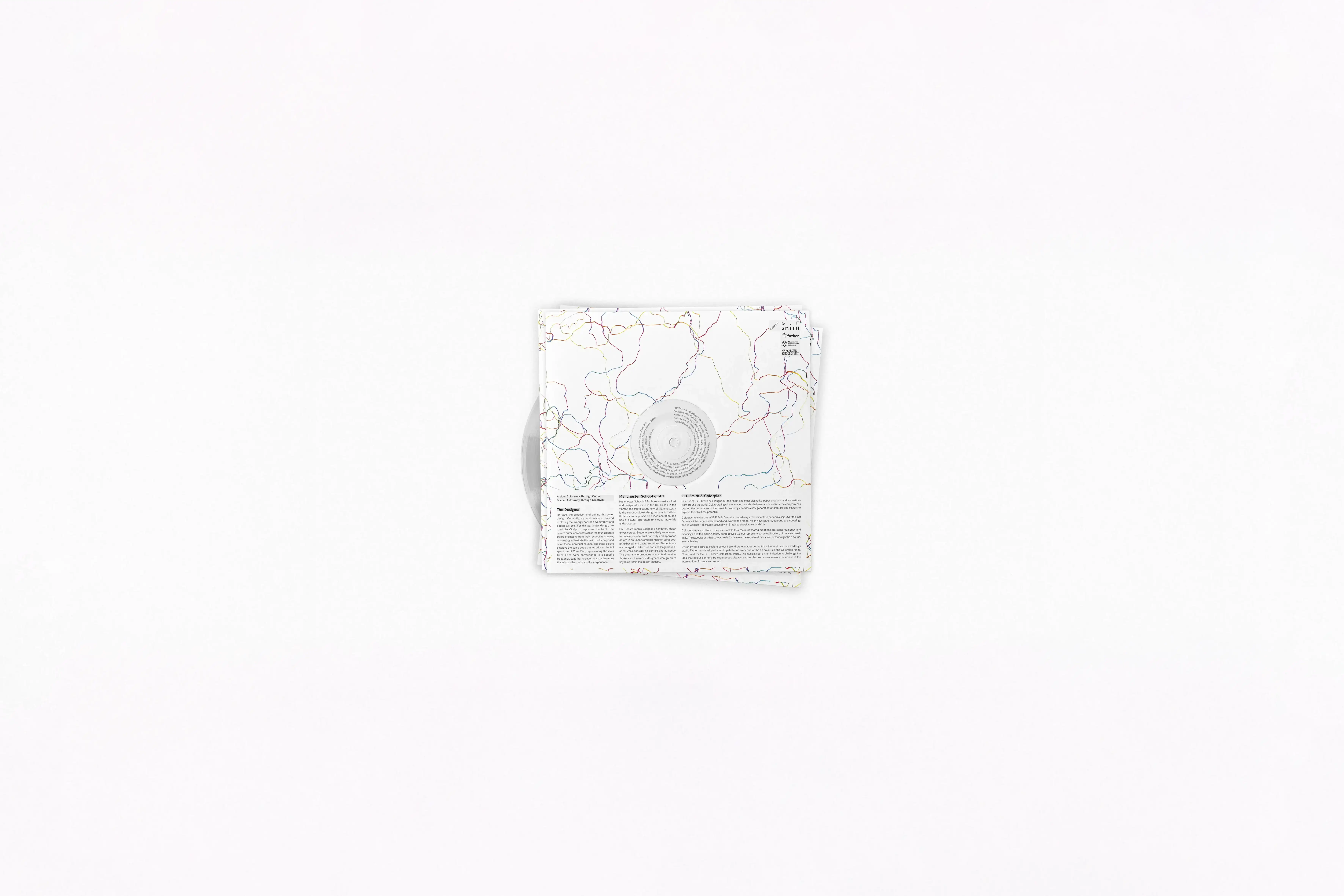 Portal was a live brief set by G . F . Smith, challenging participants to design a vinyl sleeve inspired the essence of their Colorplan paper collection. In response, I developed a custom JavaScript sketch that generated a continuous line drawing, that reacts live to the audio of the tracks on the vinyl. My submission was shortlisted by G.F. Smith, though it did not progress to the final selection.
